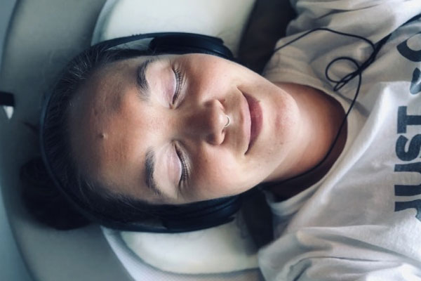 Lunettes sur les yeux et écouteurs aux oreilles, allongé confortablement sous une douce couverture, laissez-vous aller à la magie des couleurs.